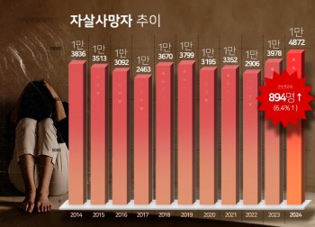 据统计厅当天发表的《2024年死亡原因统计》,去年自杀死亡人数为14872人,比前一年增加了894人(6.4%),创下了2011年以来的最高纪录。平均每天自杀死亡人数为40.6人。