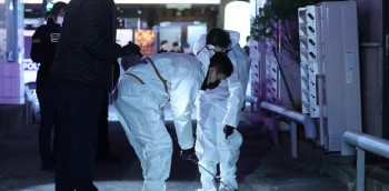 | 本月3日下午,庆南昌原市马山会原区合成洞一家汽车旅馆发生凶案,警方在现场勘察取证/韩联社 |