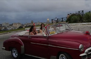 | 古巴首都哈瓦那,游客开着老爷车兜风/美联社 |