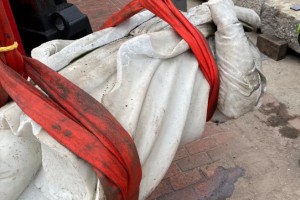 | 当地时间2020年7月6日,示威者向港口投掷的克里斯托弗·哥伦布雕像在美国马里兰州巴尔的摩内河畔被打捞上来/美联社 |